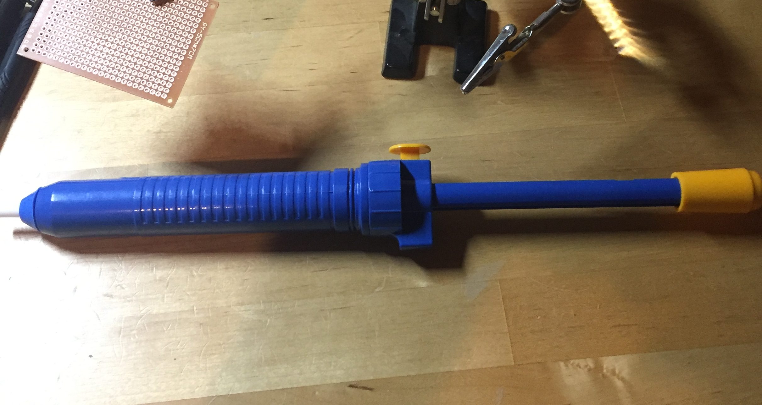 Long story short I love the thing. This works WAY better than the soldering braid, but as I type this Im realizing this didn’t work particularly well on the braided wire. So maybe the soldering braid would work better on the solid core stuff too? I bet it would… At any rate – I thought I’d desolder the LED off the perfboard from the last post. With this tool it was super easy to do…