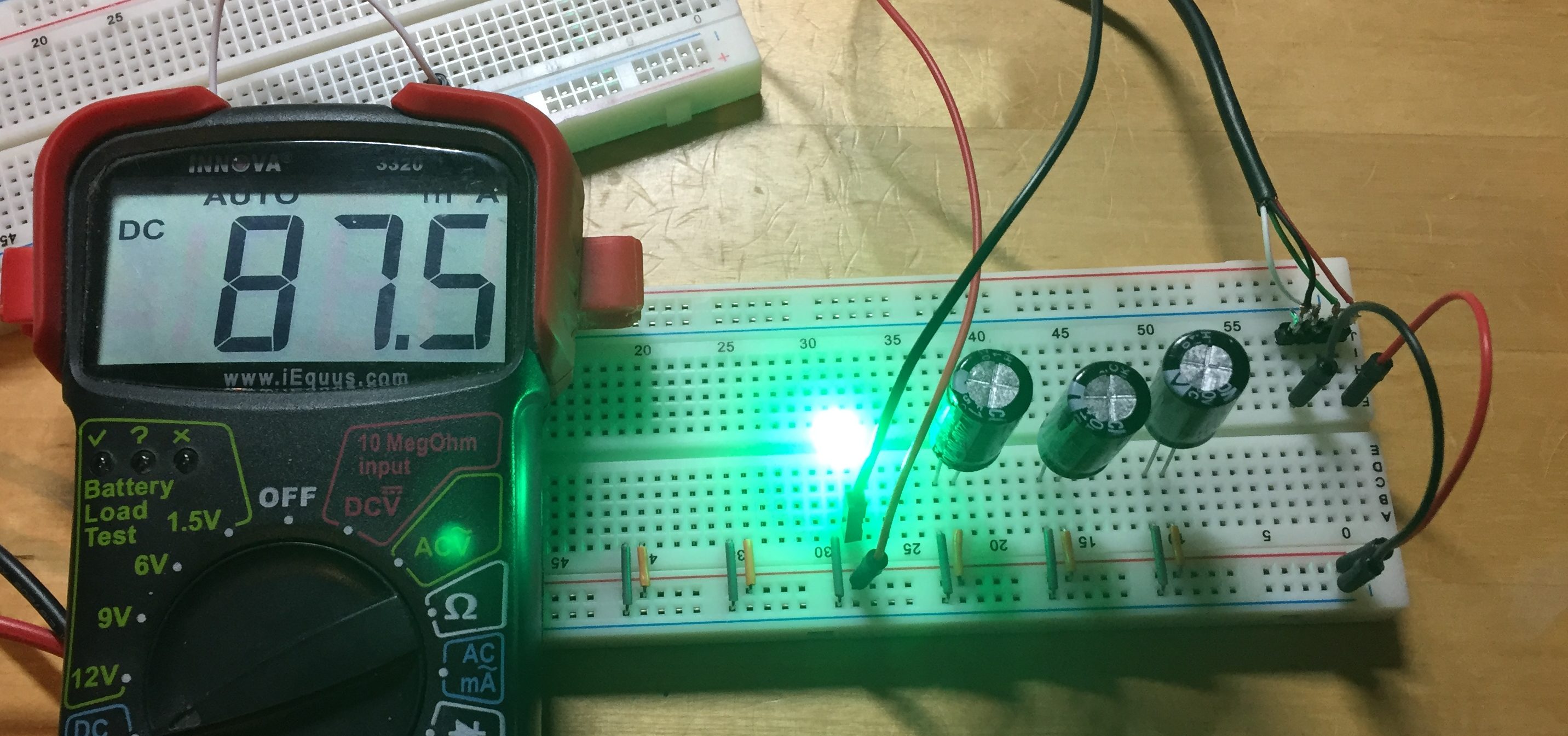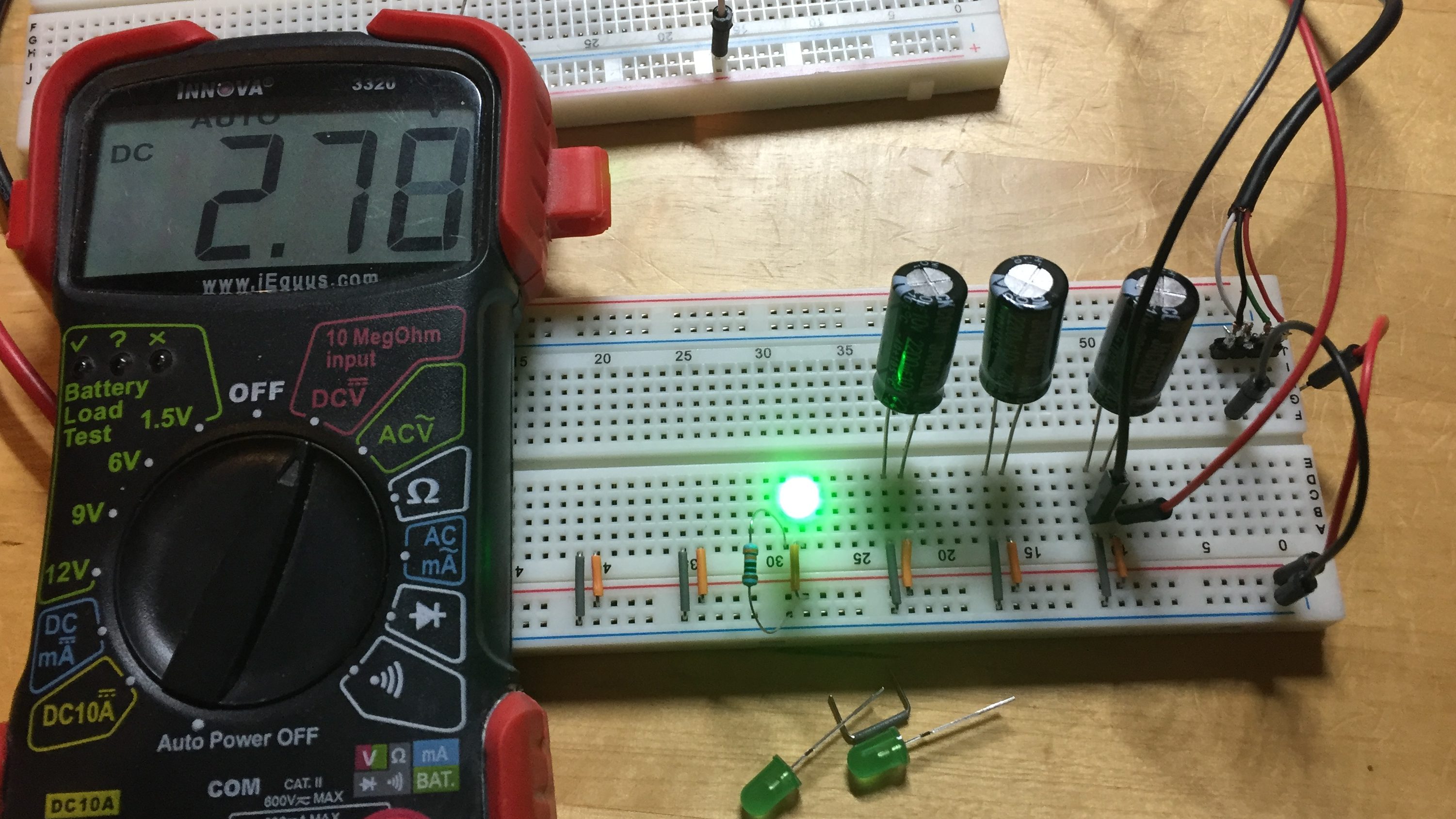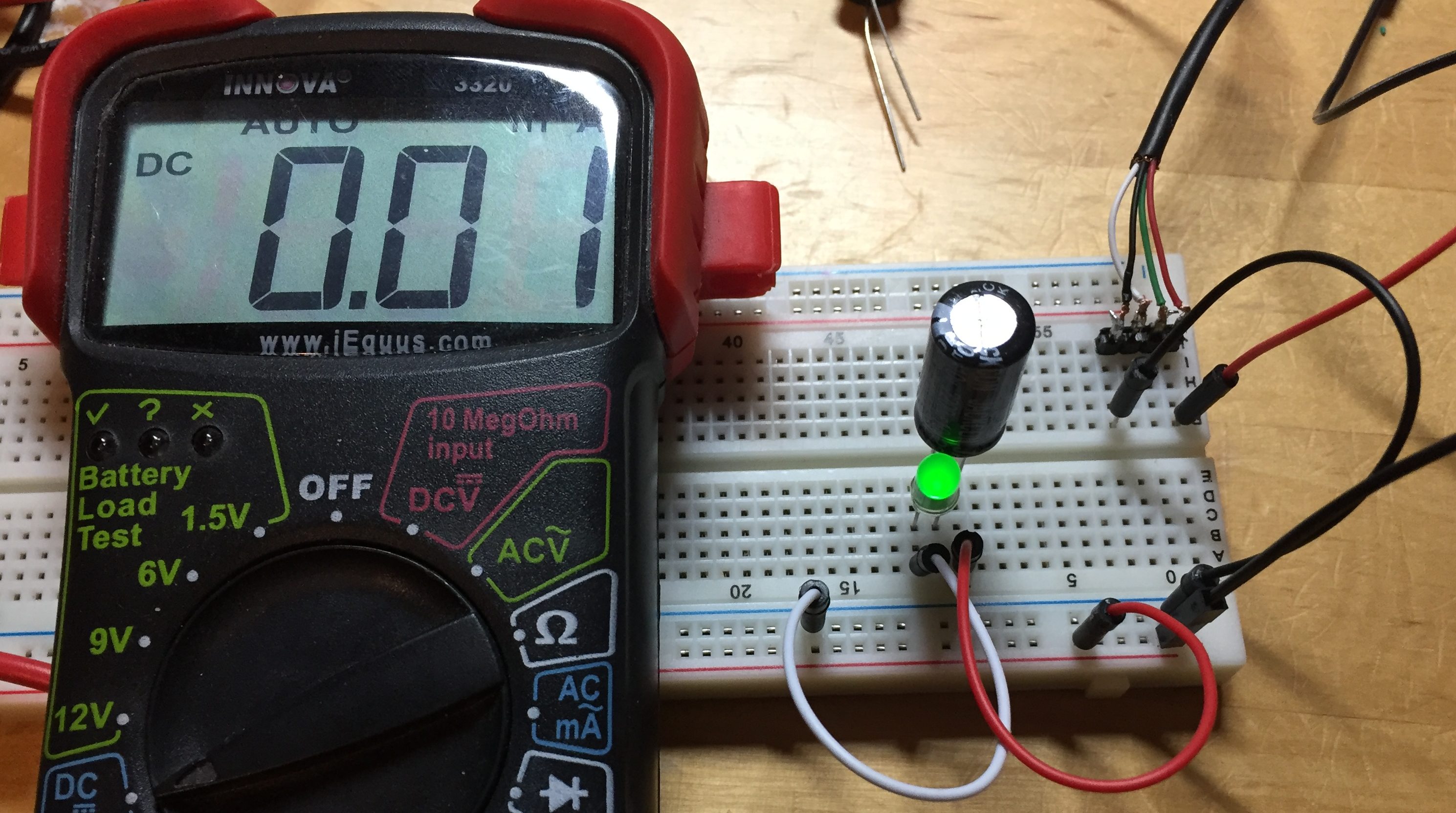 Before I started all of this I knew what a capacitor was. They’re like little batteries…. sort of…. So while capacitors are pretty easy to understand, their uses cases are a little different than I had expected. So let’s take a quick look at how capacitors work. The easiest way to see this is by trying something like this…