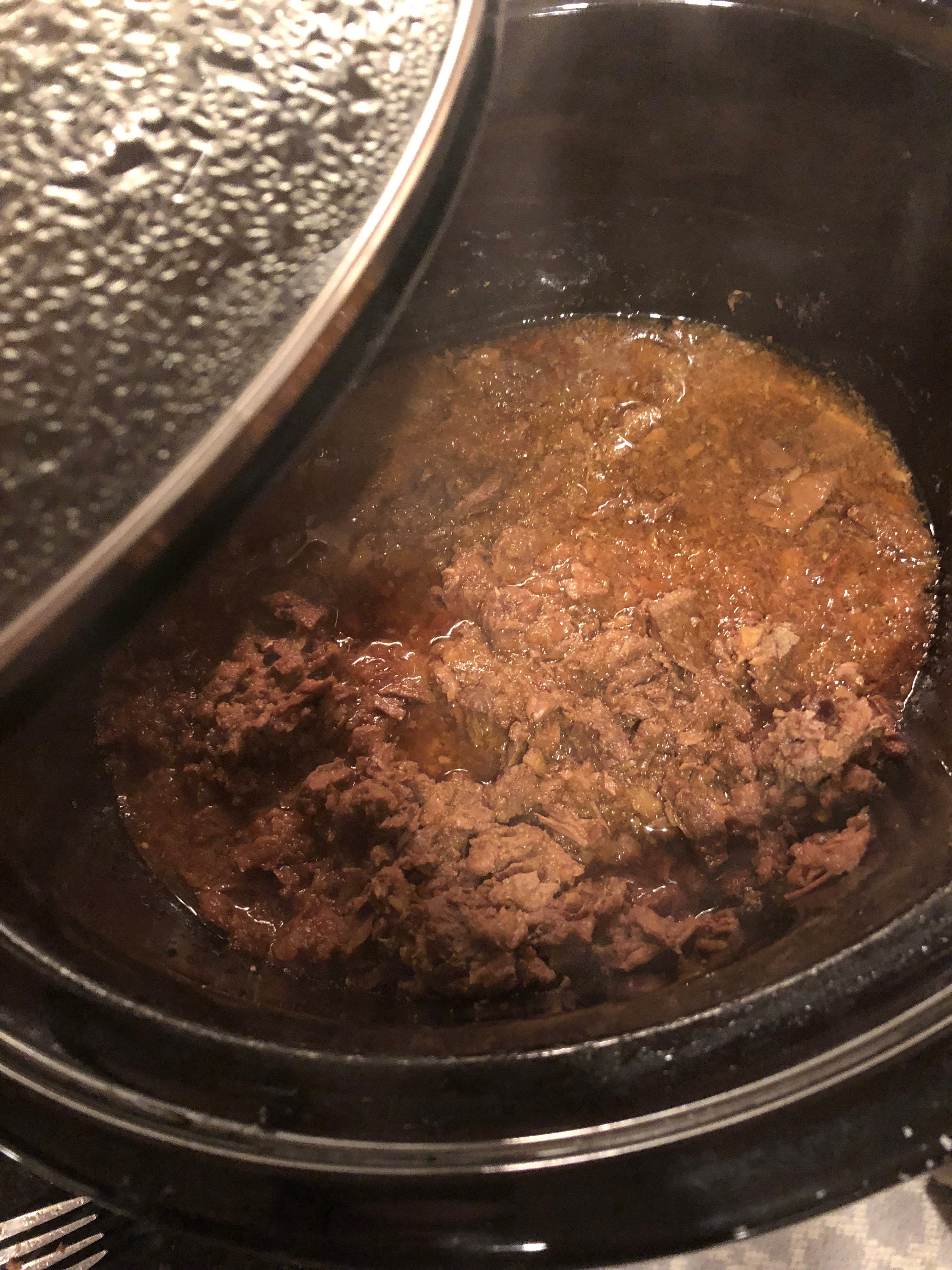 One of my resolutions for this year was to be more adventurous in my cooking. So today I tried a recipe for Korean BBQ beef burritos. While burritos themselves are not adventurous, the meat selection for me was. I found a recipe online for how to make the BBQ beef in the slow cooker mistakenly thinking that it was instead an Instant Pot recipe (I got one for Christmas, sort of my thing right now). Then after figuring out that it wasn’t, I thought I’d still use the Instant Pot (because it can also act as a slow cooker (it can do EVERYTHING!)) but then realized I wanted to use the Instant Pot to make rice later for said burritos so, alas, I had to pull out a real slow cooker an use it (sighs mightily). Anyways – I followed this recipe and I have to say that I was a little disappointed. Not in the recipe necessarily, but perhaps in the fact that the beef didn’t turn out how I expected. I slow cooked it on high for 4 hours and by 3 hours the beef was falling apart into very small pieces.