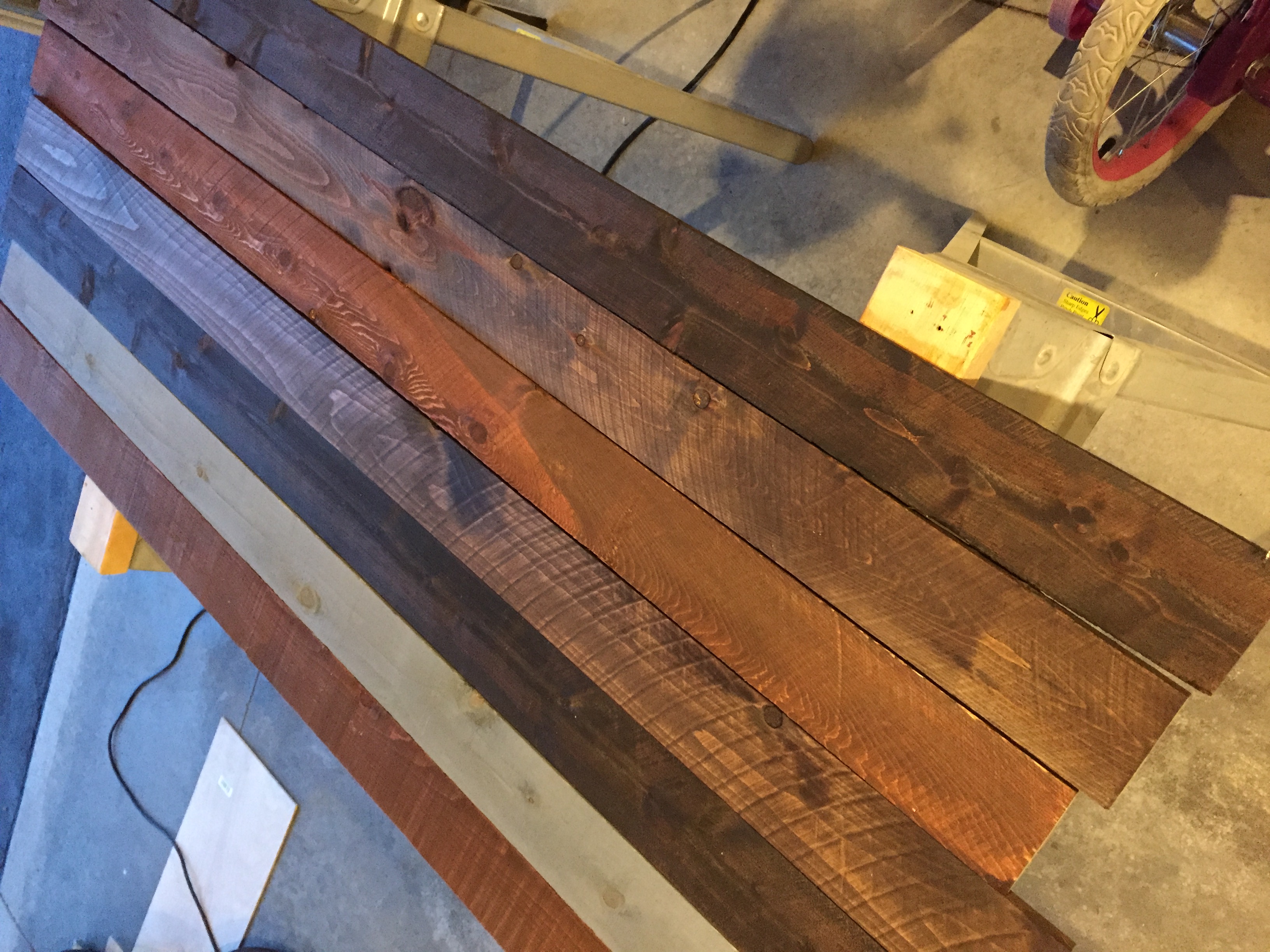 Im buying cedar fence pickets, cutting the top off of them, and then staining them 4 different colors. I was on the fence about the grey stain but I’ve been assured by many people who ‘have an eye for this sort of thing’ that it looks good in the mix. Once I get some back board up I’ll be starting to put them up in a staggered sort of fashion. One of the problem I ran into though was that the fence pickets were wet from being stored outside. Im worried that if I stain them wet and put them up that they’ll shrink on the wall leaving gaps. So this is my attempt at drying them out…