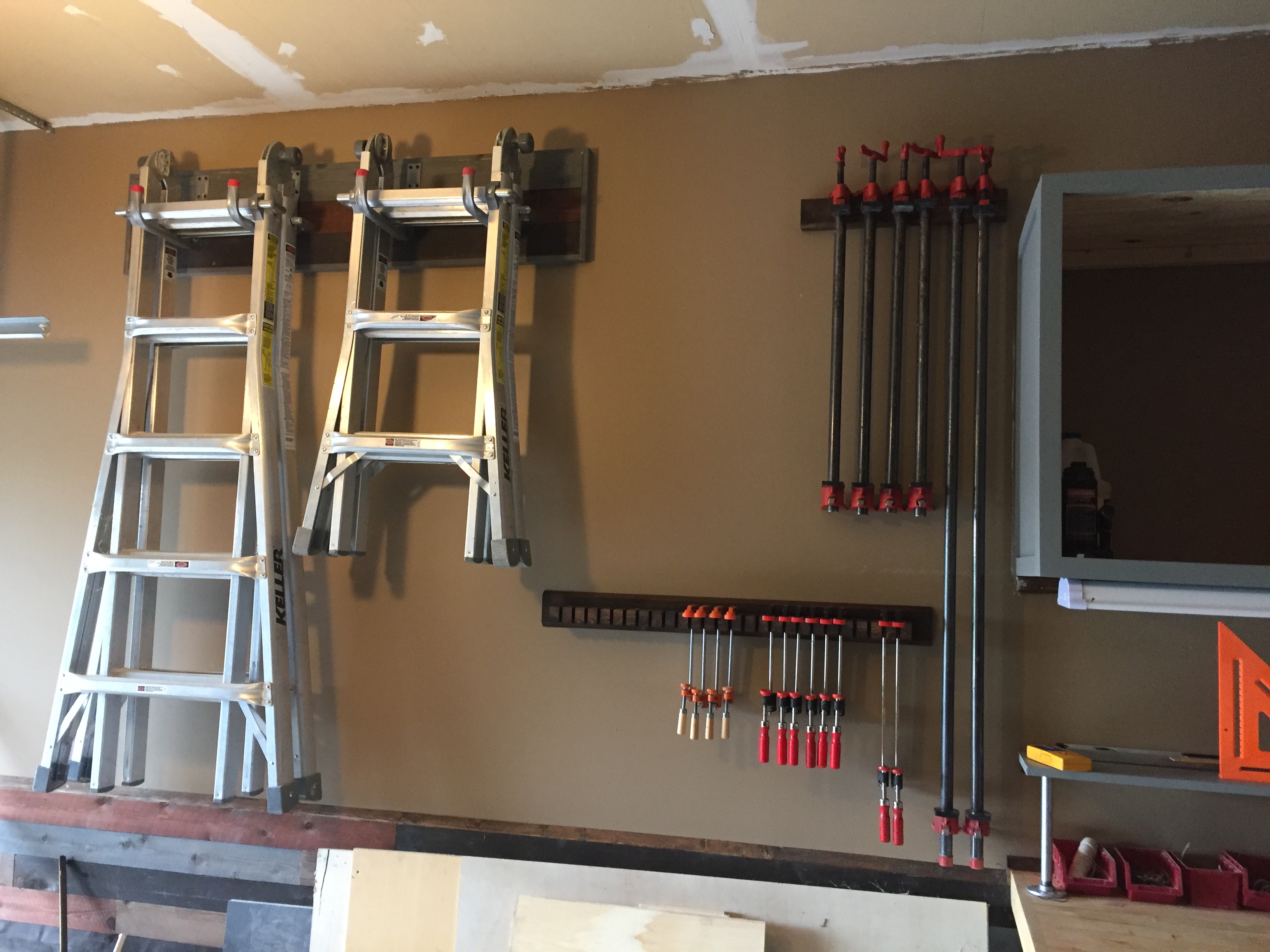 I also just got done with two sets of holders for my clamps and a rack to hold my ladders. Im pretty happy with how they turned out too…